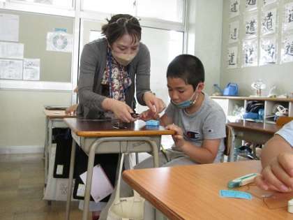 5年生は家庭科で「ソーイング(裁縫)」について学習しています。先週に引き続き、裁縫ボランティアの皆様が来校し、子どもたちの活動支援を行っていただきました。誠にありがとうございました。