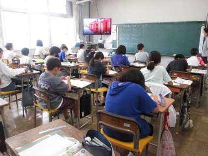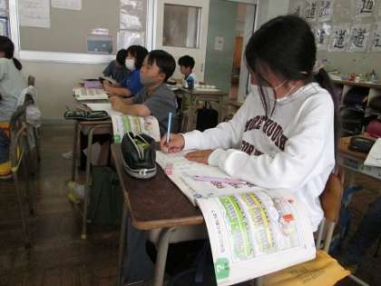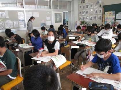 5年生は算数で「単位量あたりの大きさ」について学習しています。2つのものを比較し、どちらが込み入っているかを考えました。