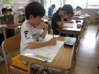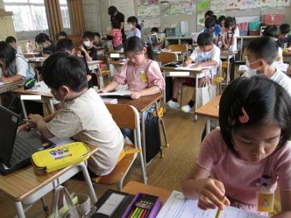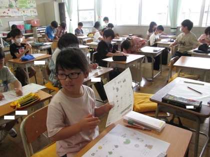 2年生は国語で漢字の練習を行っていました。ワークシートに書き込みをしながら理解を深めています。