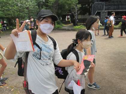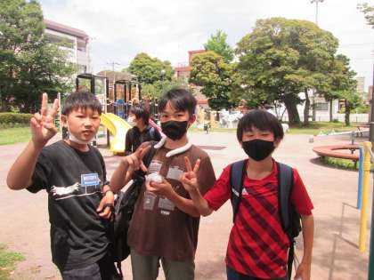 観劇後は、高沢公園まで歩き、昼食です。この頃には少し日差しも強くなりました。昨年度まで社会科見学なども制限されてきた6年生なので、高沢公園での昼食は遠足を兼ねてという意味もありました。