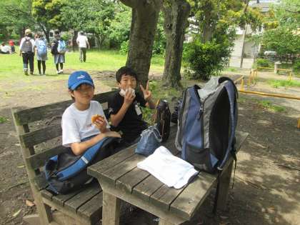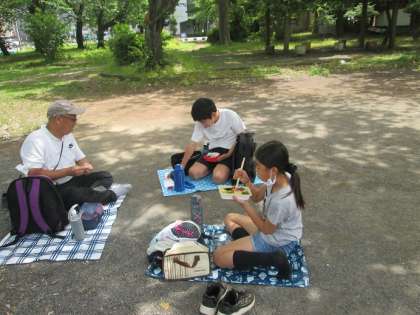 お弁当を食べ終わると、遊具で幼い頃の気持ちに戻って遊んでいる6年生のうれしそうな表情が印象的でした。