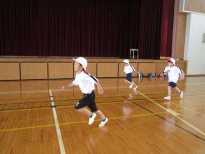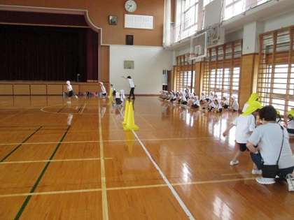 1年生は体育の時間において、新体力テストを実施しました。シャトルランにチャレンジしていました。