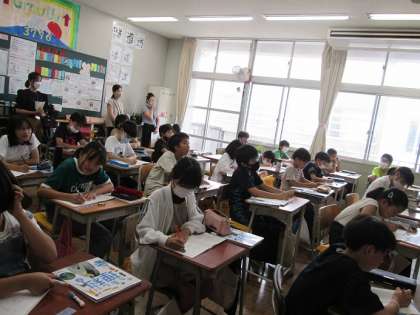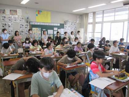 5年3組は社会科、4組は理科の公開授業です。理科は、メダカについての学習です。いつものように発表できたかな?