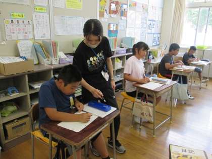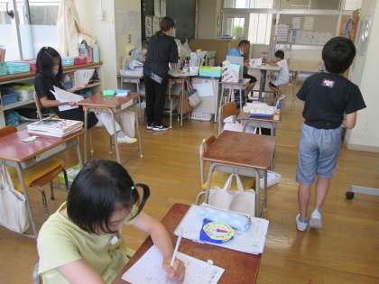 3組は算数でした。解いた問題を先生のところにうれしそうに持って行く様子が見られました。