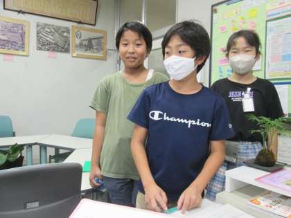 5年4組の代表の子たちが、自然教室のしおりを持ってきてくれました。10/4、5は天気がいいといいですね。