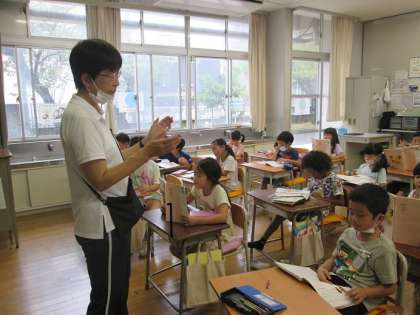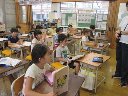 1年4組は「よみかえそう」をみんなで読むところでした。音読がとても上手になってきています。