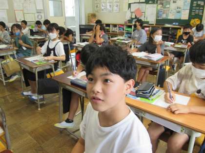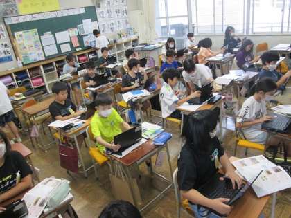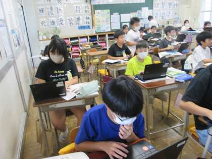 5年3組は社会科「これからの食料生産」の学習です。Chromebookを使って各自調べ学習を行っていました。