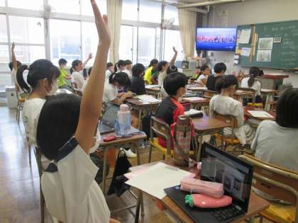 5年4組は家家庭科「整理整頓 片付け名人になろう」の学習です。どうやったらみんなが片付け名人になるのか意見を出し合っていました。片付いているって気持ちいいですよね。