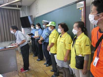 足下の悪い中、沼津警察署様、交通安全協会様、金岡交通安全連合会様、市役所生活安心課様、PTA補導部の皆様にご出席いただきました。ありがとうございます。