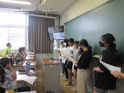 6年生が交通安全リーダーとして日々感じたり、考えたりすることをまとめて各クラスで発表しました。