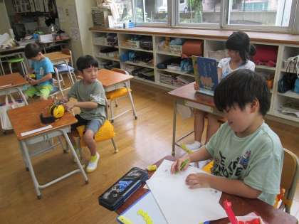 なかよし1組は読書やプリントの学習です。スーパーマーケットに見学に行く学年の子たちは、準備をしていました。スーパーマーケットに行って、自分の目や耳で確かめてきてくださいね。