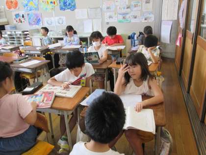 2年3組は読書をしています。読書の秋、読書は想像力を広げます。たくさん読んでくださいね。