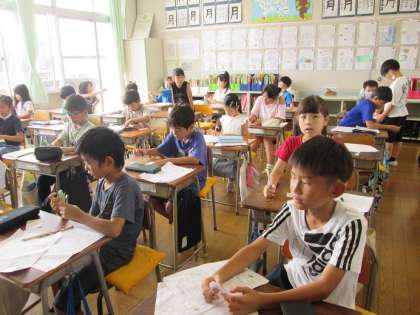 3年1、2組は社会科見学の振り返りとスーパーマーケットの方へのお礼の手紙を書いていました。「バックヤード」「マイナス18度の冷凍庫」などキーワードがたくさん出てきました。また、うれしそうに教えてくれました。よく売れるものは「白いもの」だそうです。「白いもの」って何かわかりますか?