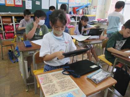 4年3組も社会科見学新聞づくりです。教頭先生が入って授業をしてくれています。