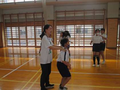 フォークダンスは、まずはジェンカから。右、右、左、左、前、後ろ、前、前、前!