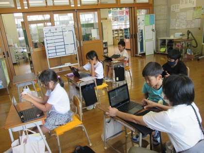 なかよし4組は学活でAIドリルの操作方法を学んでいました。Chromebookの操作もスムーズになっています。「できた!」という声が上がっていました。