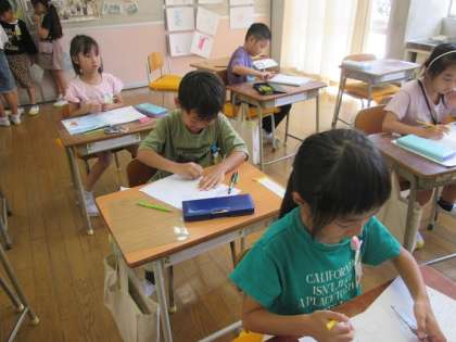 1年3組は算数の「たしたり・ひいたり」の学習です。「少しむずかしい」と言う子もいましたが、粘り強く取り組んでいました。「わかった」と小さな声でつぶやいたときはこちらもすごくうれしくなりました。