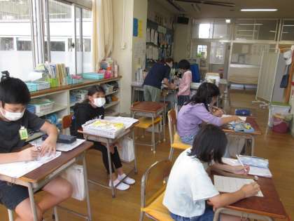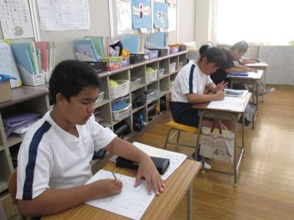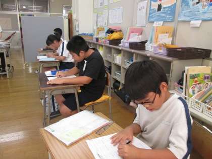 なかよし2組は算数の学習です。隣から大きな声が聞こえてきますが、みんな、集中してそれぞれのプリントに取り組んでいます。すごい集中力です。