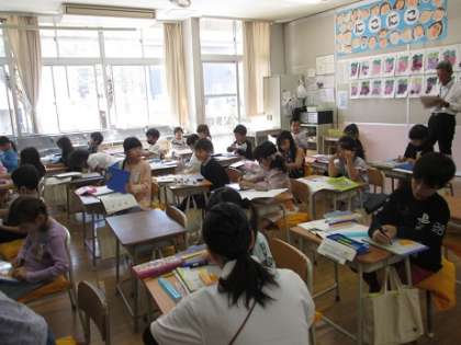 1年生の学習の様子です。算数では、たし算の計算方法について、ブロックなどの具体物を操作して、計算の仕方を説明しました。