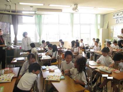 3年生は言語科「英語の時間」において、「What do you like? 〜何がすき?〜」という題材を学習しています。何が好きかを言い合う活動を、ペアで楽しみながら行っていました。