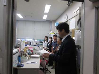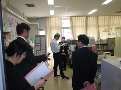 学校訪問では、静東教育事務所、沼津市教育委員会の方々が事務室や保健室に立ち寄りました。