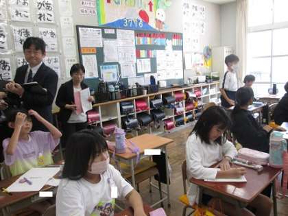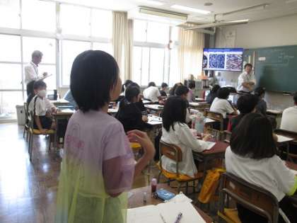 5年生は理科で「流れる水のはたらきと土地の変化」について学習しています。実験結果をもとに、みんなで話し合いました。
