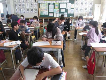 5年3組は算数の分数の学習です。分母の違う3つの分数をたしたり。、引いたりする時、どのように計算すればよいのかを考えていました。