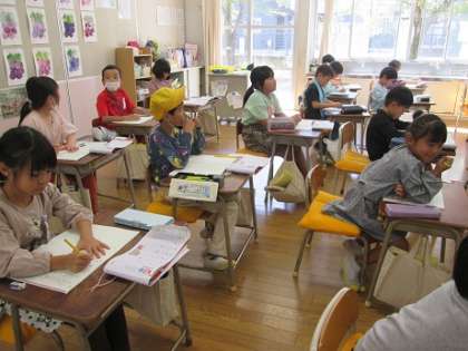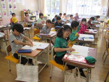 1年生は国語で「くらしをまもる車」という説明文について学習しています。新出漢字を丁寧に視写していました。