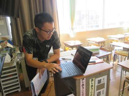 3年生はオンラインで学習を進めていました。算数の学習では「3位数×1位数」の計算の仕方について理解を深めました。