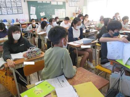 6年生は算数で「体積」について学習しています。演習問題を解きながら、公式について理解を深めました。