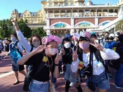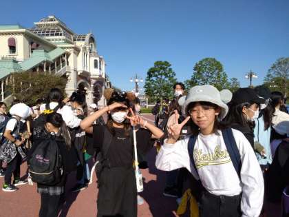 東京ディズニーランドでは5時間半滞在の予定です。みんなで楽しんでいます。
