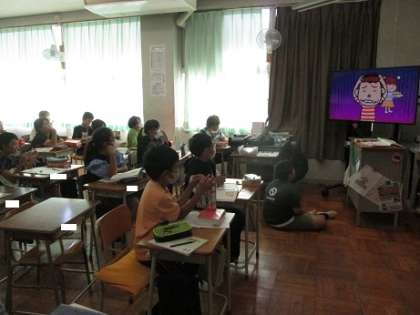4年生は国語で故事成語について学習しています。今日は、故事成語の成り立ちと意味を調べました。最初に故事成語を使った映像を視聴しました。