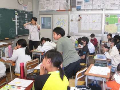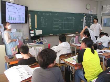 5年生は家庭科で「朝食の大切さ」について学習を進めました。教科担任と栄養教諭のティームティーチングで授業を行いました。なぜ朝ご飯が大切なのかをみんなで話し合いました。