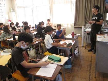 5年生は外国語活動を行っていました。ALTの発する英語を聞き取り、大文字や小文字で書く活動を行いました。