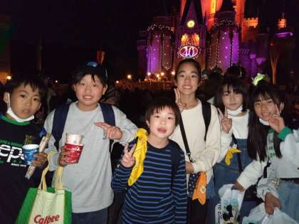 東京ディズニーランドでの活動を満喫しています。暗くなってきましたが、みんな元気に活動しています。