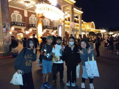 東京ディズニーランドでの活動を終え、グループごとに集合場所に戻ってきました。みんな満足そうな表情です。