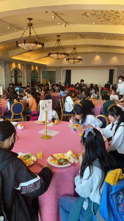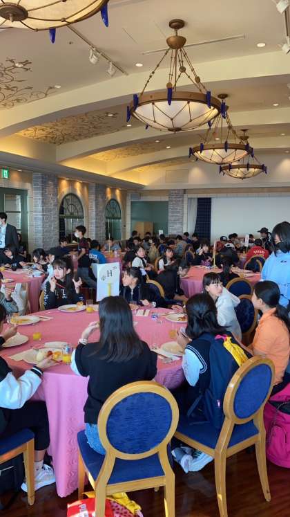修学旅行2日目です。6年生は、昨日の疲れも見せずに今日も元気にスタートです。7時から朝食をとっています。ホテルのビュッフェ形式を楽しんでいます。