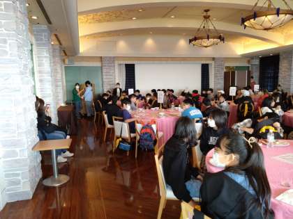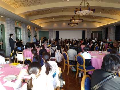 シェラトン・グランデ・トーキョーベイで過ごしている6年生です。朝食が終わり、ホテルの方があいさつをしてくださっています。