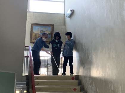 本日、5年生は福祉出前講座を行っています。沼津市社会福祉協議会の職員やボランティアの方が参加してくださいました。職員から説明を聞いた後、車いすやアイマスク等の体験をしました。