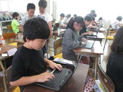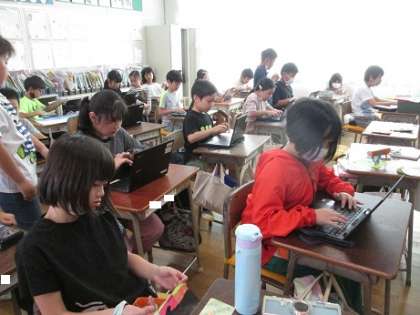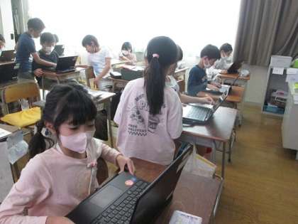 3年生は国語でローマ字の学習を進めています。学習内容の確認として、クロームブックを使ってタイピング練習をしていました。