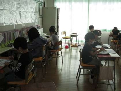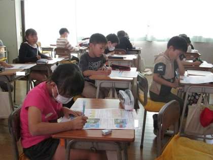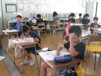 3年生は理科で「地面の様子と太陽」について学習しています。単元のまとめテストを行い、既習事項の確認をしました。