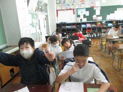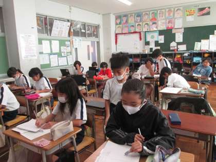 4年4組は、国語「心に残ったことを短文で書き、詩であらわそう」の学習です。心に残ったことに「おこられたこと」「県大会に出場したこと」などなどいろんなことが書かれていました。