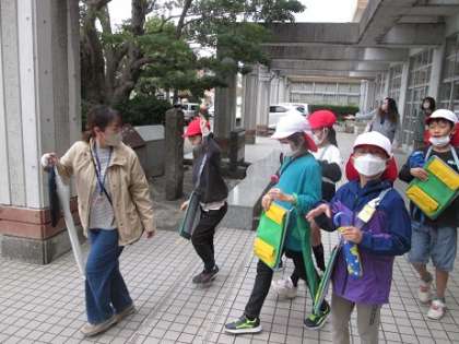 3年生は総合的な学習で「金岡の宝」について学習しています。今日は保護者の皆様が子どもたちの活動を見守ってくださいます。みんなで保護者の方にあいさつをしてから出発しました。