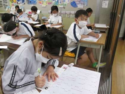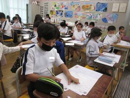 2年生は国語で漢字テストを行っていました。みんな丁寧に書いていました。たくさんの字を覚えましょう。