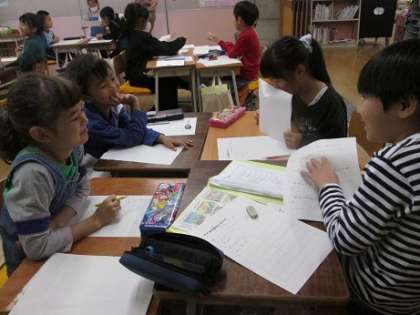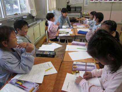 1年生は国語で「クイズ大会をしよう」という活動を行っています。3ヒントクイズを作り、友達同士で楽しみました。