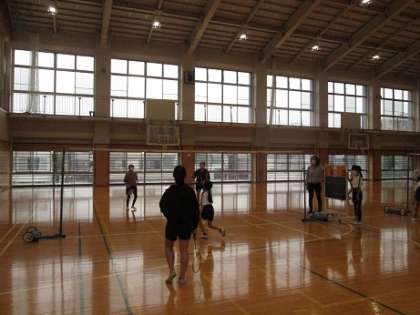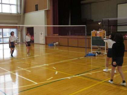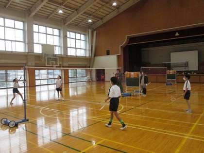 バドミントンクラブの様子です。試合形式でたくさん打ち込みました。