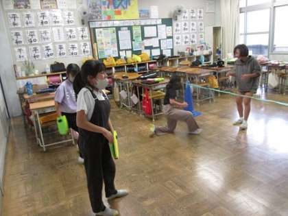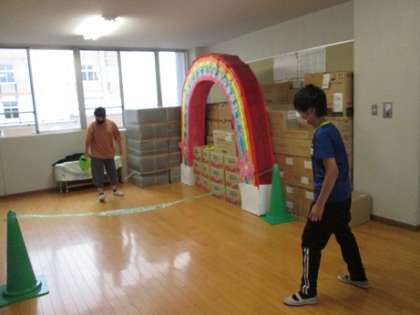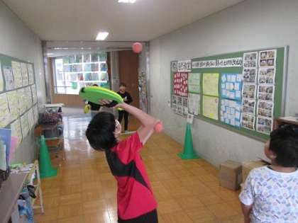 ドッジボールクラブの様子です。雨のためグラウンドが使えず、室内スポーツに切り替え活動を楽しみました。
