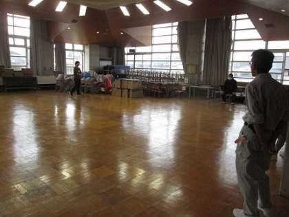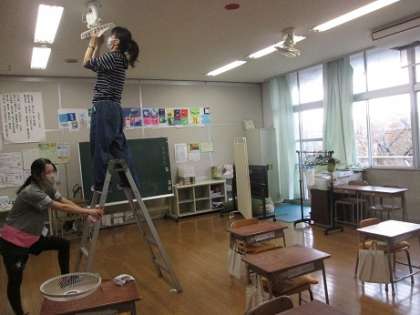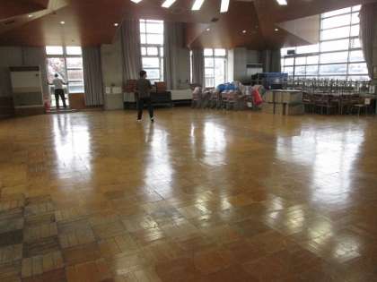 ひまわりホールのワックスがけを男性保護者で行っていただきました。仲よし学級教室の清掃は女性保護者が行ってくださいました。
