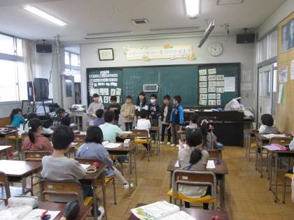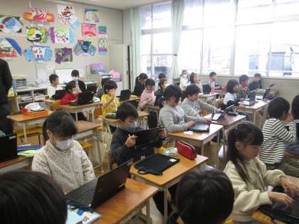 2年3組は音楽「かぼちゃ」の学習です。いろんな楽器を使ってグループで演奏しています。聞きながら拍手をしたり、指揮をしたり、身体を動かしたりする子たちもいました。楽しそうに演奏していました。