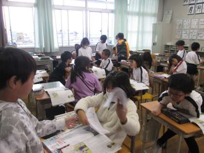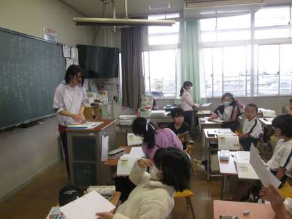3年4組は、「びしょぬれの本」というお話から、正気に話すか、話すことができないのかという葛藤の場面を話し合っていました。その後、道徳の振り返りプリントを書いて集めていました。